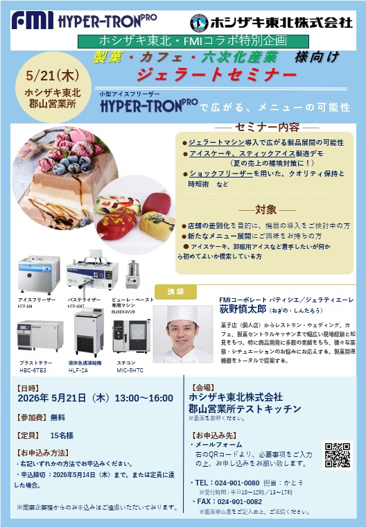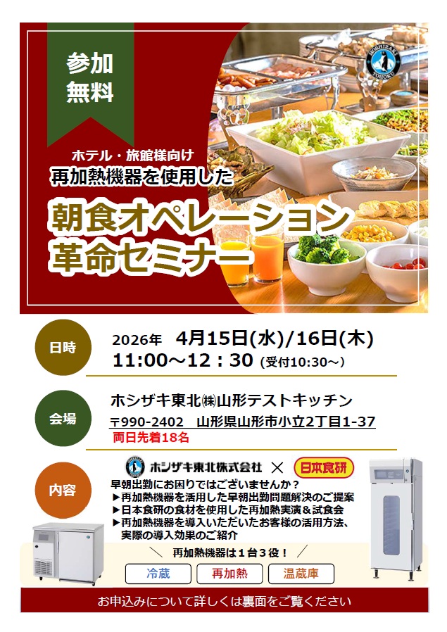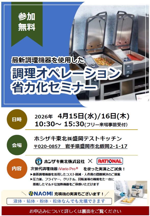 これまでに、和食料理人とコラボした「スチームコンベクションオーブン」による出汁づくりや、バリスタを招いたカフェスタイルで行った「ホシザキドウコンディショナー」を使ったパンづくりなど、発見性が高く、楽しめるイベントを多数企画。機器を最大限使いこなす秘訣を楽しくご紹介しています。